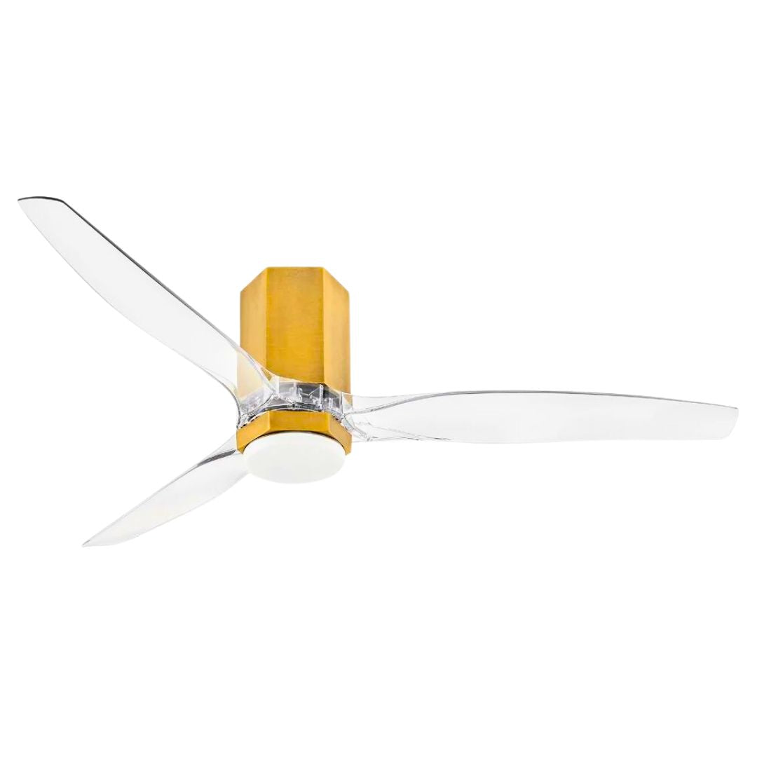 The Heritage Brass 52" Ceiling Fan from the Facet collection combines interesting angles with bold metal features for a striking, modern look. Featuring hexagonal etched glass and a sleek Heritage Brass finish, this fan adds a touch of contemporary style while providing efficient airflow and integrated LED lighting.