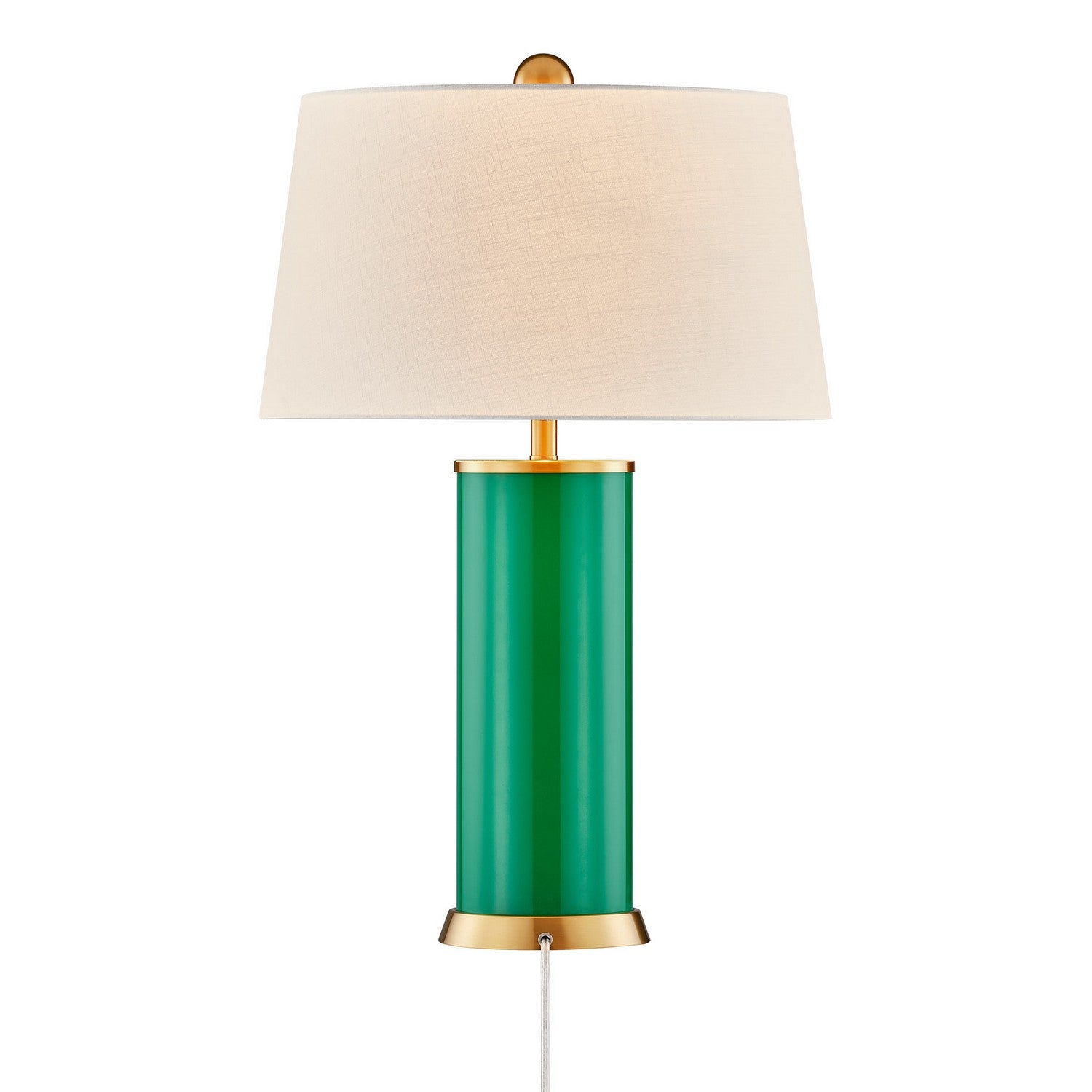 Meet Melissa, the cheerful table lamp that brings vibrant personality to any room! This Coco & Dash creation showcases a stunning Jolly Green base paired with a crisp white linen shade that delivers a warm, inviting glow. Warm Brass hardware details add sophisticated flair to the playful design. Standing 29.25" tall with an 19" width, Melissa fits perfectly on side tables and desks. Compatible with standard bulbs up to 100 watts (bulb sold separately), this lamp combines fun style with practical illumination for spaces that deserve a little extra pizzazz.