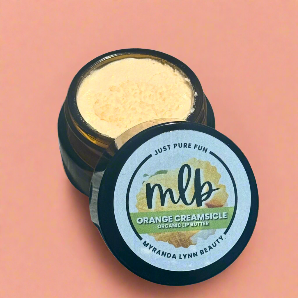 Hydrate, soothe, and treat your lips to the sweet, citrusy magic of our Orange Creamsicle Lip Butter. Made with ultra-nourishing shea butter, coconut oil, vitamin E oil, mica powder, and flavoring oil, this balm melts into lips for long-lasting moisture—without the sticky feel. The nostalgic orange-vanilla scent is basically summer in a jar.