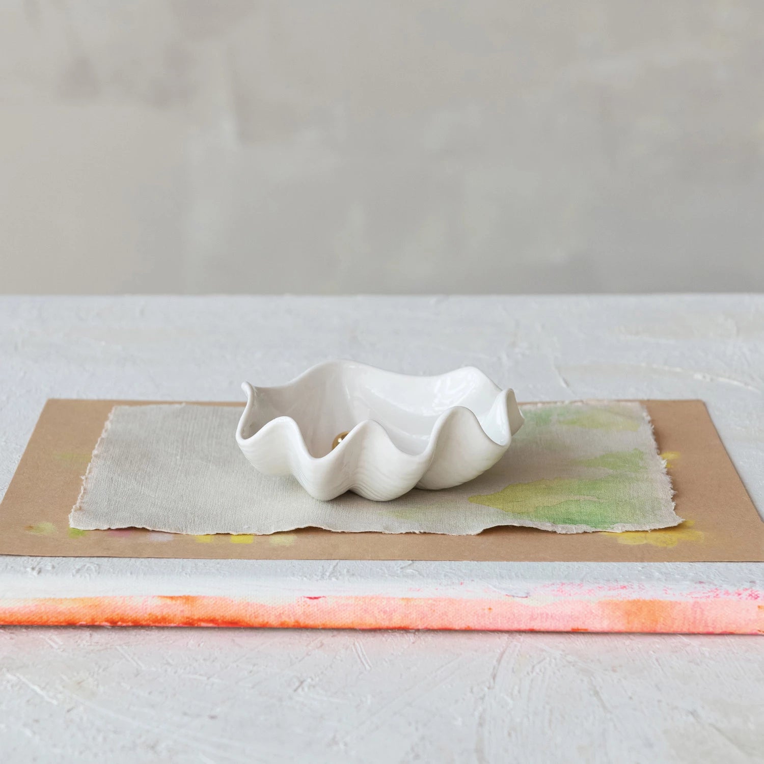 This stoneware clam shell dish delivers instant seaside glam. Sculpted in a crisp white shell with a lustrous electroplated gold faux pearl resting inside, it’s the perfect mix of whimsical and luxe. Sized at 5" × 4¼" × 1¾", it’s just right for rings, earrings, keys, or tiny treasures — or simply as a stylish display piece that brings beach-house energy to vanities, dressers, nightstands, and entry tables.